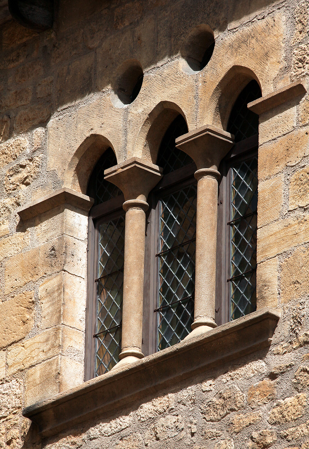 Composed of two architecturally different buildings linked by a hexagonal stair tower, this manor ‘s origins are rooted in the 13th century. The elegant tower, mullioned windows, slate rooves, distinctive columned leaded windows crowned with oculi, and its striking entrances all contribute to its magnificent facade.